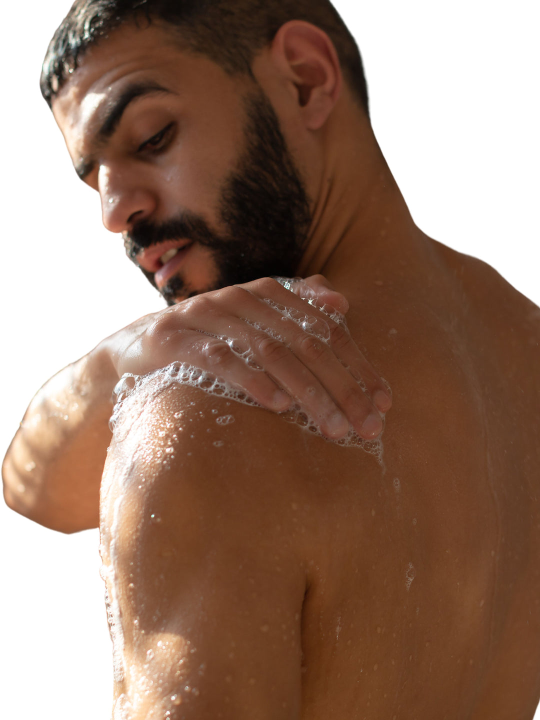 faire mousser au contact de l'eau, appliquer sur les parties désirées puis rincer abondamment.